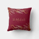 Personaliseer dit stijlvolle rode en gouden vrolijke kerstkussen met uw familienaam. Ik creëerde deze unieke hand getekende elegante goudkleurige dennen en bessen op een rode achtergrond. Het eigentijdse ontwerp is in een goudkleurige neutrale getinte gradiënt. De moderne elegante typografie is bewerkbaar. Zorg ervoor dat je je familienaam op de achterkant zet. Dit unieke botanische ontwerp zou ook een persoonlijk kerst- of vakantiegeschenk zijn.