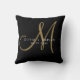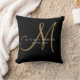 Een modern minimalistisch, goud en wit monogram kussen op zwart, met de namen van de paren en de trouwdatum. Een geweldig cadeau voor nieuwe bruiloften. Aanpassen met uw namen en trouwdatum.