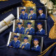 A customizable graduation design with navy blue background template that lets you add your own photos and details to create a meaningful and memorable tribute.