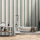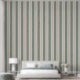 A large scale green and khaki ticking stripe pattern with a linen texture.