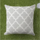 Stijlvol en knap vierkant accent in de openlucht biedt een Marokkaans quatrefoliepatroon in een witte kleur met lichte platina grijze achtergrondkleur. Pas de achtergrond aan om met uw openluchtdecor te coördineren.