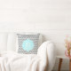 moderne, koele, elegante en klassieke grijze, witte zigzagstrepen met een waterblauwe decoratieve vorm in het midden, in monogram, in initiaal, in naam, in tekstcadeaus voor haar.