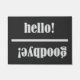 Moderne Hallo Vaarwel Black en White Novelty Doormat - Deze grappige, zeer logische traan die je ziet wanneer je op het punt staat het huis binnen te komen. Eerst zie je hallo en als je weggaat, zeg je vaarwel. Dit hallo afscheid doormat zal vanaf het begin een ultra quirky home decor stijl aan je voordeur helpen plaatsen! Het zal het ideale huisverwarmingsgeschenk maken voor die vriend, familielid of werkcollega die van het onverwachte houdt.