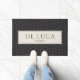 Modern Herringbone Family Name Black Pattern Deurmat