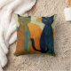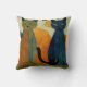 Aantrekkelijke, impressionistische visie van twee gestileerde katten in blauw, groen en roestkleur op een kussen met worp.