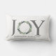 De moderne Joy manuscriptdouane greenery met grote vakantie werpen kussen. Dit stampmodel wordt op de voor- en achterkant van de klassieke witte kussen weergegeven. © Julie McIver