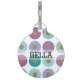 felgekleurd label van identiteitskaart van het huisdier met een kleurrijk cirkelpatroon in paars, roze, blauwgroen, en blauw. Voeg de naam van het huisdier en uw informatie op de rug toe.