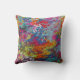Een vette, kleurrijke gooikussens met een uniek abstract verfeffect in felle tinten, oranje, geel, rood, blauwgroen en blauw die aan beide zijden van de kussen is. Een opvallende toevoeging aan elk thuisdecor.