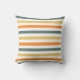 Modern herfst thema kussen met horizontale strepen in witte, gele, oranje en donkergroene tinten.