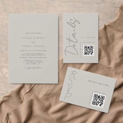 Modern lichtgrijs QR-code Trouwdetails Informatiekaartje
