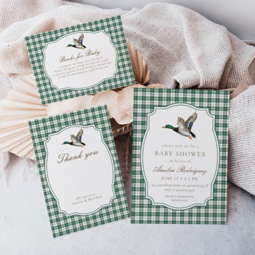 Modern Green Gingham Mallard Duck Baby ShowerOntworpen door S. Potter