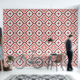 Deze peel en stick wallpaper heeft een boeiend en gedurfd ontwerp. Het behang toont een herhalend geometrisch motief. Het bestaat uit diamant en quattro-folie vormen ingewikkeld gerangschikt. Elke diamant omsluit een quad-trefoil, die op zijn beurt een kleiner diamantpatroon in het midden bevat. Het totale effect is visueel boeiend. De overheersende kleuren zijn rood, wit en zwart. Deze tinten creëer een opvallend contrast en roepen een gevoel van levendigheid. De stijl is geïnspireerd op de traditionele Marokkaanse kunst. De symmetrische geometrie en ritmische herhaling doen denken aan Marokkaanse tegel design.