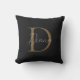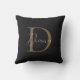 Modern Midnight Black Mossy Gold Script Monogram Kussen