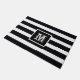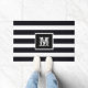 Modern monogram Initiaal Elegant Classic zwart-wit gestreepte buitendeurdeurmat. Klik op personaliseer deze sjabloon om deze snel en eenvoudig aan te passen met uw eigen monogram-initiaal. Wordt wereldwijd snel verzonden. Moderne Monogrammed Initiaal Elegant Zwart Wit Deurmat. Creëer door RjFxx © *Alle rechten voorbehouden. #MonogramOutdoorDoormat #BlackAndWhiteOutdoorDoormats #ZazzleMade