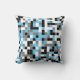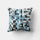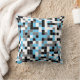 Deze kleurrijke gooi kussen voorzien van een multicolored geometrisch patroon in lichtblauw, zwart, grijs en wit, en wit net. De vierkantjes zijn gekleurd in een willekeurig patroon dat op de rug hetzelfde is. U kunt de kleuren in het hulpmiddel van het Ontwerp uitgeven.