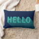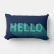 Navy Blue-kussens met een modern abstract ontwerp van een blauwgroen aquatische schaduw "Hallo" met een lange schaduwgradiënt. Voeg een leuke en kleurrijke aanraking toe aan uw huis of slaapkamer met deze moderne Hallo kussen.