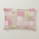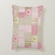 Patchwork bestaat uit massief en gestreept licht pastelroze en beige betonverbinding en genaaide harten, waarmee het idee van het upcyclen wordt bevorderd.