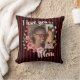 Celebrate the special bond with her through this modern floral photo pillow. Perfect for Mother's Day, birthdays or any occasion to show your love. Features beautiful pink florals framing your cherished photo against bold burgundy red and black contemporary stripes with heartfelt "I love you" message. Fully customizable - change "Mom" to Mama, Nana, Grandma, Auntie, or add a first name to make it uniquely hers. A meaningful keepsake she'll treasure forever. Ideal for thoughtful gift-givers wanting to create something personal and memorable.