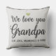 Modern Photo Grandpa Script Heart Throw Pillow features your favorite photo with the text "We (heart) you Grandpa" in a modern white typography overlay. Personalize by editing the text in the text box provided.