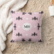 Modern Pink Elegant Black Bee Pattern Monogram Throw Pillow.