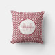 Modern Red and White Scallops Monogram en Naam Kussen