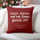 Modern Red Humor Santa Personalized Fun Christmas Throw Pillow.