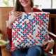 Deze kleurrijke geometrische werpen kussen kenmerkt een metaballpatroon in rood, wit, en blauw. De kleuren zijn volledig aanpasbaar!