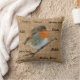 Moderne Robin Bird, faux burlap textuur, Script kussen.