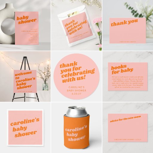 Modern Cute Pastel Pink Orange Retro Baby ShowerOntworpen door Opal Ellery