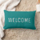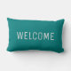 Modern rustiek blauwgroen blauw Welkomstkussen. U kunt de tekst eenvoudig wijzigen.