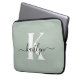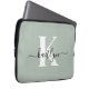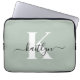 Deze eenvoudige, elegante saliegroene 13-inch laptophoes met uw voornaam in een trendy scriptlettertype in zwart en uw eerste initiaal in een modern petten lettertype in wit is ideaal voor u. Het is stijlvol en trendy en toch zeer klassiek. Het is uniek - net als jij!