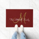 Modern Script Monogram Familienaam Burgundy Deurmat
