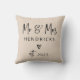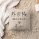 Deze moderne, trendy neutrale kussen hebben je achternaam en coole, zwarte handgeschreven script dat zegt "Mr & Mrs.", samen met een gekrabbeld hart. Een mooie en elegante bruiloft die perfect past bij elk decor.