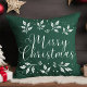Modern Merry Christmas script gooi kussen. Het ontwerp is voorzien van de tekst "Merry Christmas" in witte typografie met witte hulstbessen en wervelende accentelementen tegen een groene achtergrond. Het is het beste gepersonaliseerde cadeau voor jezelf, je vrienden, familieleden en zelfs buren. We hebben 35+ meer kerst kussens in ons collectie die je zeker zal houden. Bekijk het en ontvang het beste kerstcadeau met speciale wensen voor uw speciale mensen. vrolijk kerstfeest!