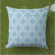 Stijlvolle kussen hebben een modern decoratief Marokkaans quatrefoliepatroon in wit. Pas de hemel/poederblauwe achtergrond aan om met uw buitendecor te coördineren.