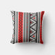 Kussen voor buitengebruik in het zuidwesten van de Aztec, geïnspireerde, moderne geometrische strepen - rijke tomatenrode tinten en grijze tinten met zwarte en witte accenten
