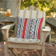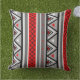 Kussen voor buitengebruik in het zuidwesten van de Aztec, geïnspireerde, moderne geometrische strepen - rijke tomatenrode tinten en grijze tinten met zwarte en witte accenten
