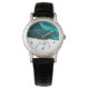 Een horloge met een abstracte stijl. Illustratie van blauwgroen agaatsteen met lagen van verschillende tinten. Een faux gouden glitter lint loopt tussen de lagen van kleur. Modern stijlvol design.