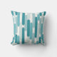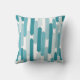 Dit kussen heeft een modern patroon van tabs in aqua, cerulean, lagune blauw en turquoise voor een kustvibe.