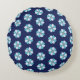 Bring a touch of elegance and tranquility to your space with this beautifully designed round pillow. Featuring a repeating floral pattern in soothing shades of teal and light blue against a deep navy background, each bloom is accented with delicate dark blue details and a warm orange center. The symmetrical design creates a harmonious balance that feels both modern and timeless. Ideal for adding cozy charm to your living room, bedroom, or reading nook, this round pillow blends artistic flair with everyday comfort.