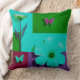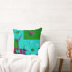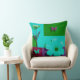 This modern floral throw pillow features oversized pink flowers set against a vibrant teal background.