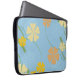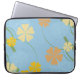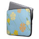 Tropische laptophoes met lichtblauwe achtergrond, gele en oranje bloemen