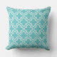 Stijlvolle kussen hebben een modern decoratief Marokkaans quatrefoliepatroon in wit. Pas de turquoise/aqua blue achtergrond aan om met uw openluchtdecor te coördineren.