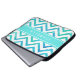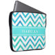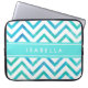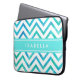 Bescherm uw laptop in stijl met dit chique sleeve. Het ontwerp is voorzien van een aqua blauwgroen blauw waterverf chevron zig-zag patroon, turquoise streep, en jouw naam of andere aangepaste tekst in een eenvoudige witte typografie lettertype. Dit elegante en trendy computer hoesje maakt een stijlvol cadeau voor haar.