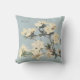 Modern White Cream Azalea Flowers Monogram Sierkussen. Japanse afbeelding van Azalea-bloemen. Witte en roombloemen op een blauwe achtergrond.