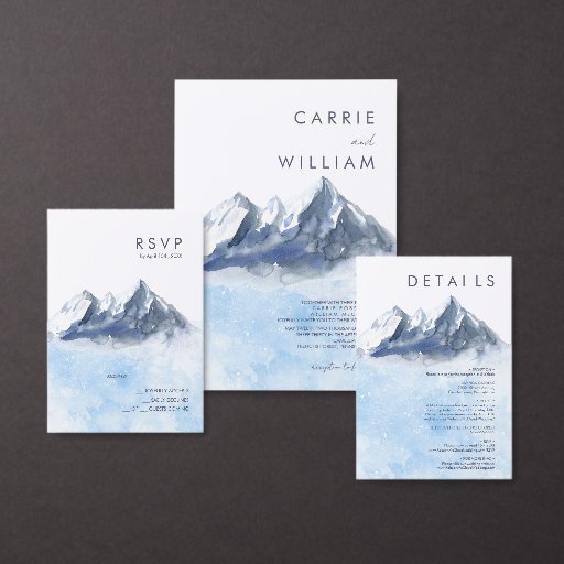 Modern Winter Mountain Pattern Wedding Etiket