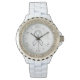 Een modern zilver chroom stijl wit lint bewustzijn in wit op witte subtiele dammen decor op een aangepaste mode horloge cadeau aan elk evenement of gelegenheden. Bewerk dit ontwerp met wat tekst als je wilt en zie dat je creatieve inspanningen werkelijkheid worden. Klik op de knop "PAS HET AAN!" of link die u op deze productpagina ziet om een gebruiksvriendelijke set ontwerptools te onthullen. Een perfect last minute cadeau idee. Borduurwerk design zijn beschikbaar in een selectie van populaire kleurenopties. Gebruik de link "Vraag deze ontwerper" om contact met ons op te nemen voor speciale ontwerpverzoeken of voor hulp bij uw aanpassingsbehoeften.