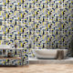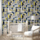 Modern Zwart Blauw Geel Kruis Uitgebroed Patroon Behang