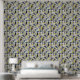 Modern Zwart Blauw Geel Kruis Uitgebroed Patroon Wallpaper. Dit is nog een 100% origineel Snuggle Hamster Design.