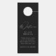 Voeg deze chique gepersonaliseerde niet storen bruiloft deur hangers aan uw bruiloft hotel welkomsttassen! De dubbelzijdige trouwdeurhanger beschikt over een niet storen bericht op de voorkant met uw aangepaste welkomstbericht aan de andere kant. Het ontwerp heeft een elegant wit kalligrafiescript met een zwarte achtergrond. Personaliseer de moderne hanger van de huwelijksdeur met uw namen, huwelijksdatum, persoonlijk bericht, enz. Ontworpen om te coördineren met onze Modern Elegance Black and White bruiloft collectie.